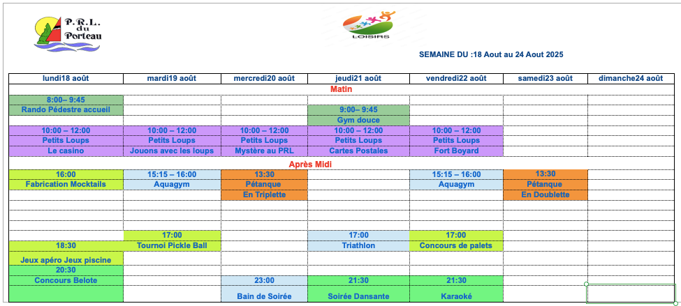 Les activités sont affichées aux endroits habituels ainsi que sur le site du PRL.